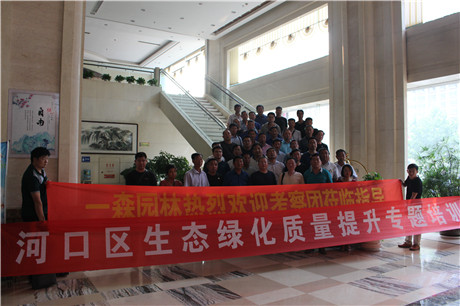 山東省東營市河口區林業參觀團到一森園林參觀視察。2018年6月19日下午,山東省東營市河口區林業局局長候保順帶領區林業局部分干部及部分綠化工程公司和林業專業合作社經理、村支部書記一行43人到一森園林參觀考察。耿軍林董事長向參觀團發表了熱情洋溢的歡迎辭。參觀團一行在張子入總工陪同下參觀了一森園林特色苗木基地。侯局長及參觀團成員對一森園林的規范化、科學化、規模化的苗木基地建設成效給予高度贊揚,表示要學習借鑒一森園林的經驗和做法,推進河口區生態文明建設再上新臺階。在參觀團參觀考察中,《冀中苗訊》記者全程進行了跟蹤采訪和報道。